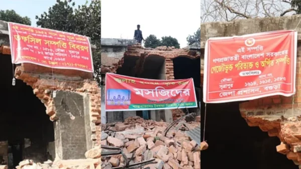 জাসদের গুঁড়িয়ে দেওয়া কার্যালয়ের জায়গায় এক দিনে তিন সাইনবোর্ড