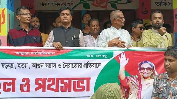 গলাচিপায় বিএনপি জামাত কর্তৃক নৈরাজ্যের প্রতিবাদে বিক্ষোভ মিছিল ও পথ সভা